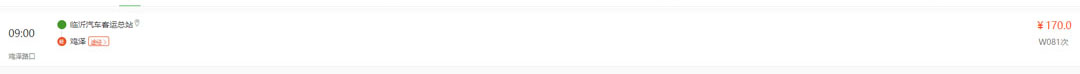 从临沂到鸡泽长途客车的客运信息, 09:00 从 “临沂汽车客运总站” 出发至 “鸡泽”(鸡泽路口)的车次,票价为 170.0 元,车次编号为 W081 次。